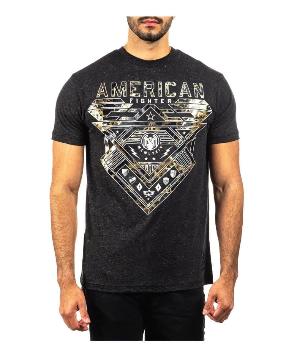 60% Cotton/ 40% Polyester; Color: Heather Black; Gold Lurex Design With Gold Foil; Short Sleeves; Crew Neck; Tagless Neck; Style #FM13336