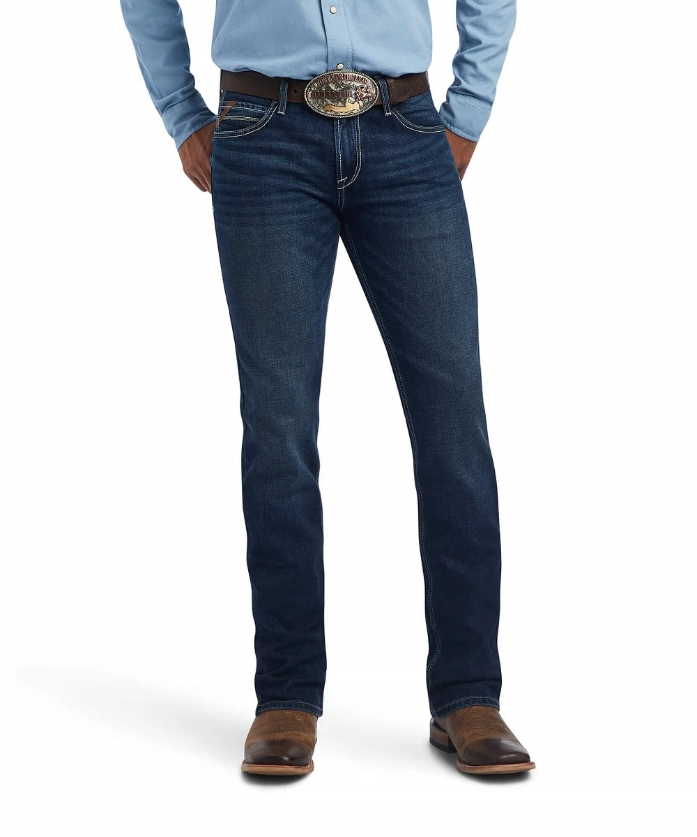 99% Cotton/1% Spandex; 13.5 Oz Stretch Denim; Color: Drake; Sits Below The Waist; Loop Lock Reinforced Rear Belt Loop; Anchored Belt Loops; Fashionable Stitching On Rear Pockets; Five Pocket Style; Light Whiskering; Heavy Duty Zippers And Hardware; Extra Deep Front Pockets; No Rub Comfort Inseam; Slim Through Seat And Thigh; Straight Leg Opening; M7 Is Slim And Modern Without Being Tight Or Restrictive; Style #10041092