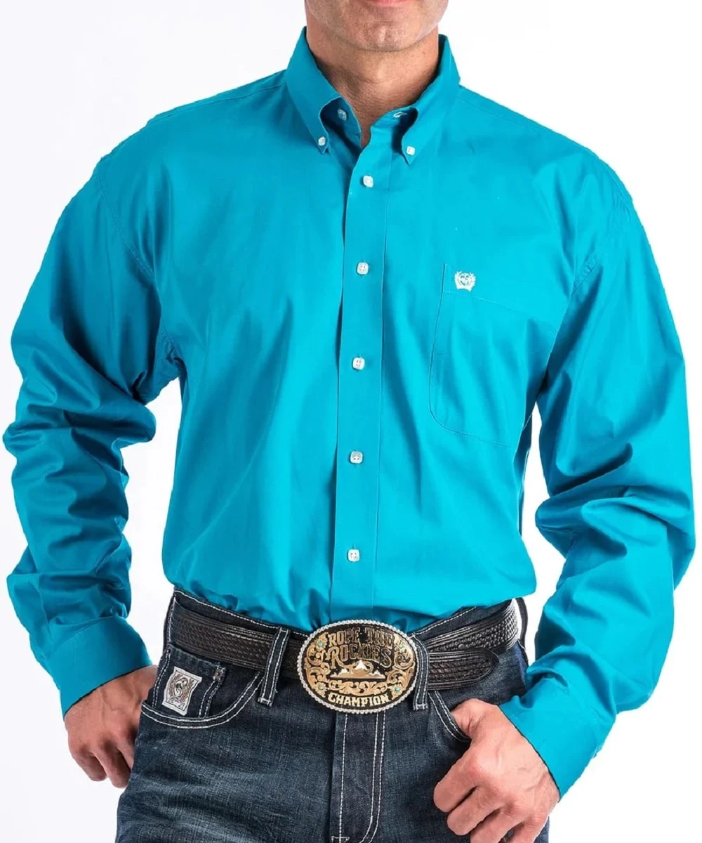 100% Cotton; Classic Fit; Long Sleeve; Button Down Collar, Placket, And Cuffs; Square White Buttons; Single Open Chest Pocket With Logo Embroidery; Straight Back Yoke With Box Pleat; Color: Solid Teal; Size: 3X; Style #MTW103800X