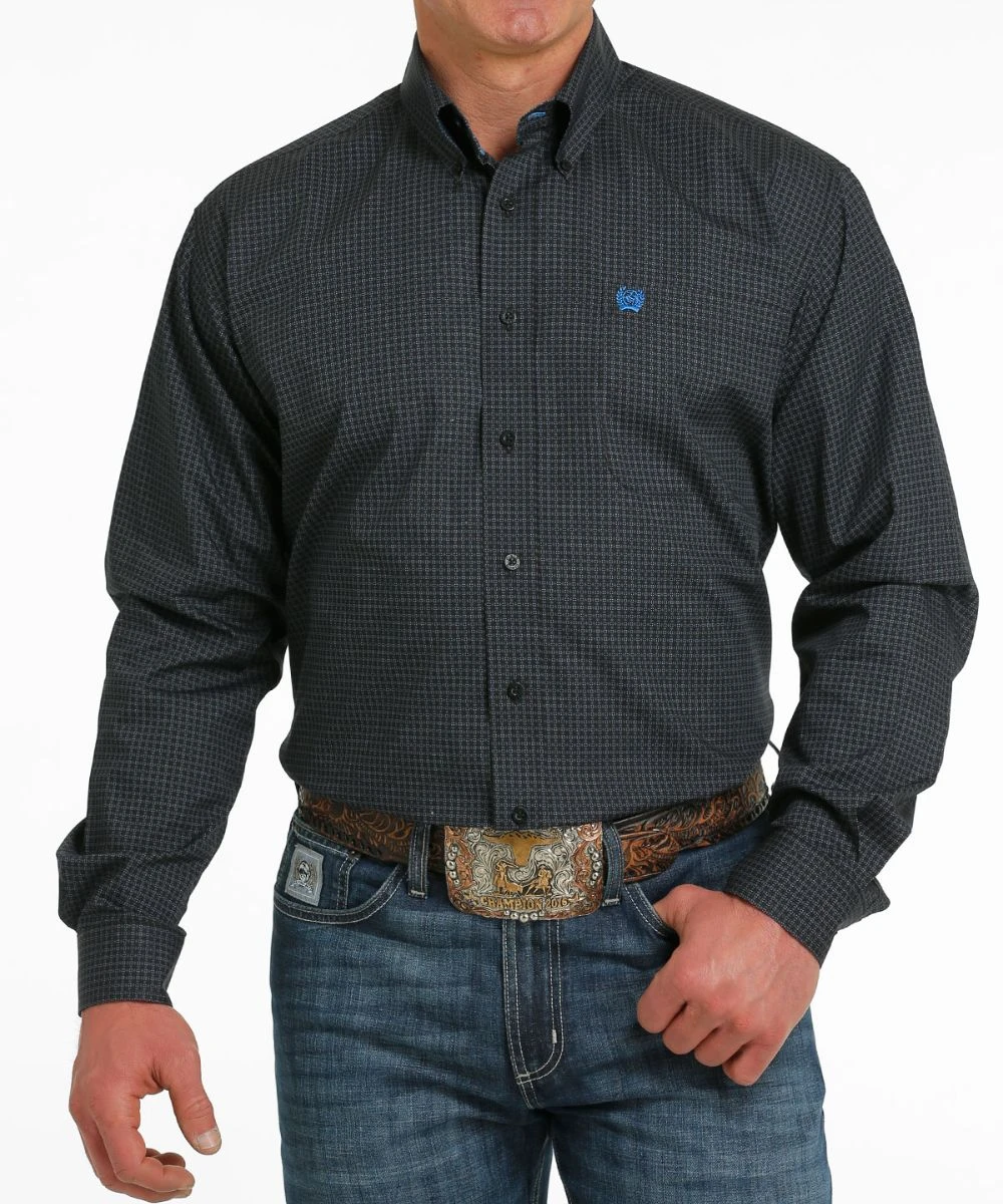 Printed Cotton Plain Weave; Classic Fit; Long Sleeve; Button Down Collar, Placket, And Cuffs; Navy Buttons; Single Open Chest Pocket With Logo Embroidery; Contrast Trim; Color: Black/Navy Geo Print; Size: 3X; Style #MTW105515X