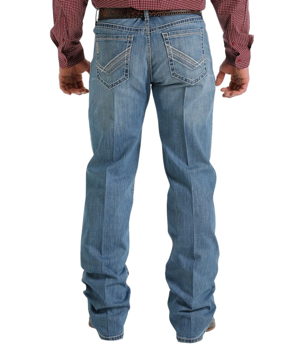 10.9 Oz. Performance Stretch Denim; Relaxed Fit; Mid Rise; Zip Fly With Button Closure; Whiskers; Hand Sanding; Five Pocket Styling; Fashion Stitch Designed Back Pockets; Bootcut Jean; Medium Stonewash; Style #MB56137001