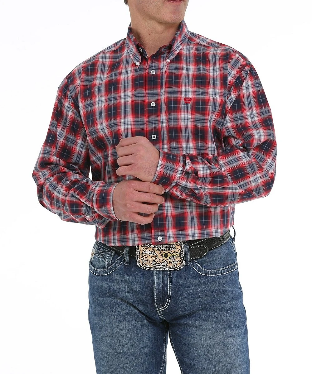 Plaid Cotton Plain Weave; Button Down Collar; Button Cuffs; Single Open Pocket With Embroidered Cinch Logo; Straight Back Yoke; White Accent Buttons; Classic Fit; Style #MTW1104915