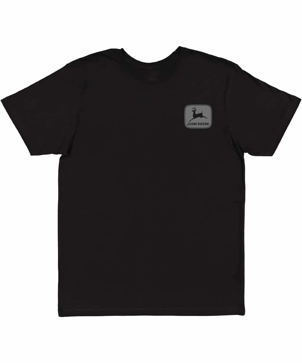 60% Cotton/40% Polyester; Crew Neck; Short Sleeve; Back Gray Graphic Tee Print Reads: John Deere, Nothing Runs Like A Deere; Front Gray John Deere Logo Print; Style #13002189